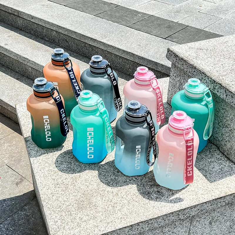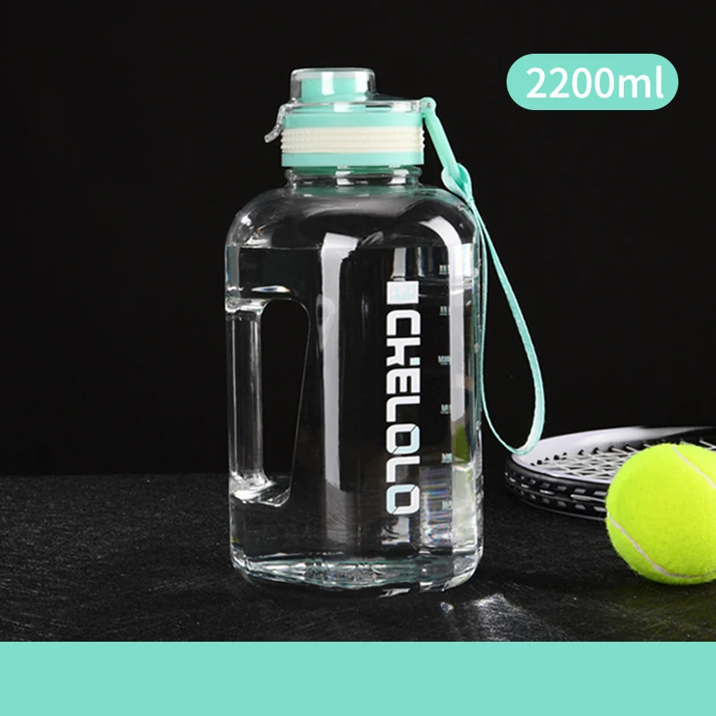 1.6L 2.2L Fruit Lid Large Capacity Sports Plastic Drinking Portable Fitness Gym Motivational Water Bottle