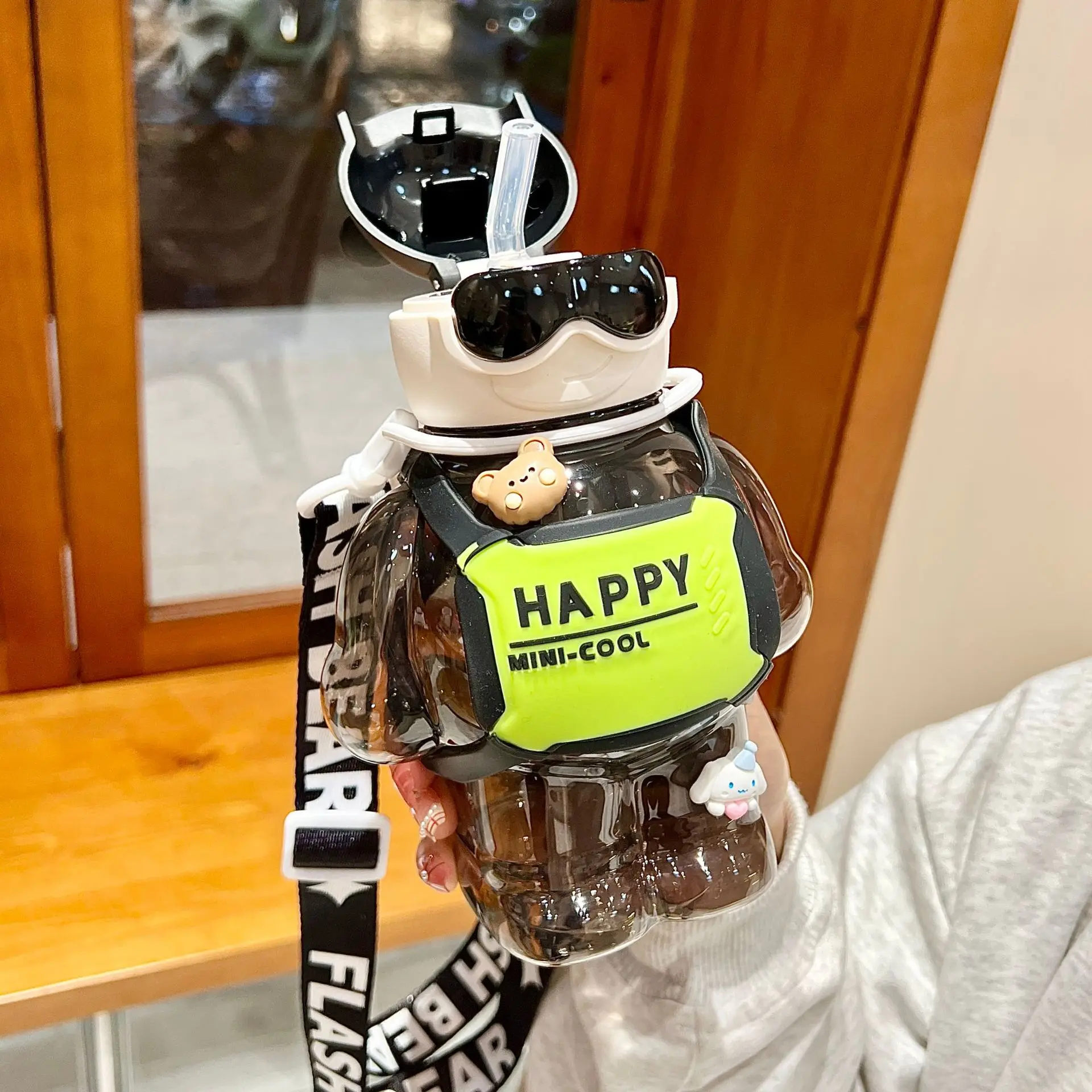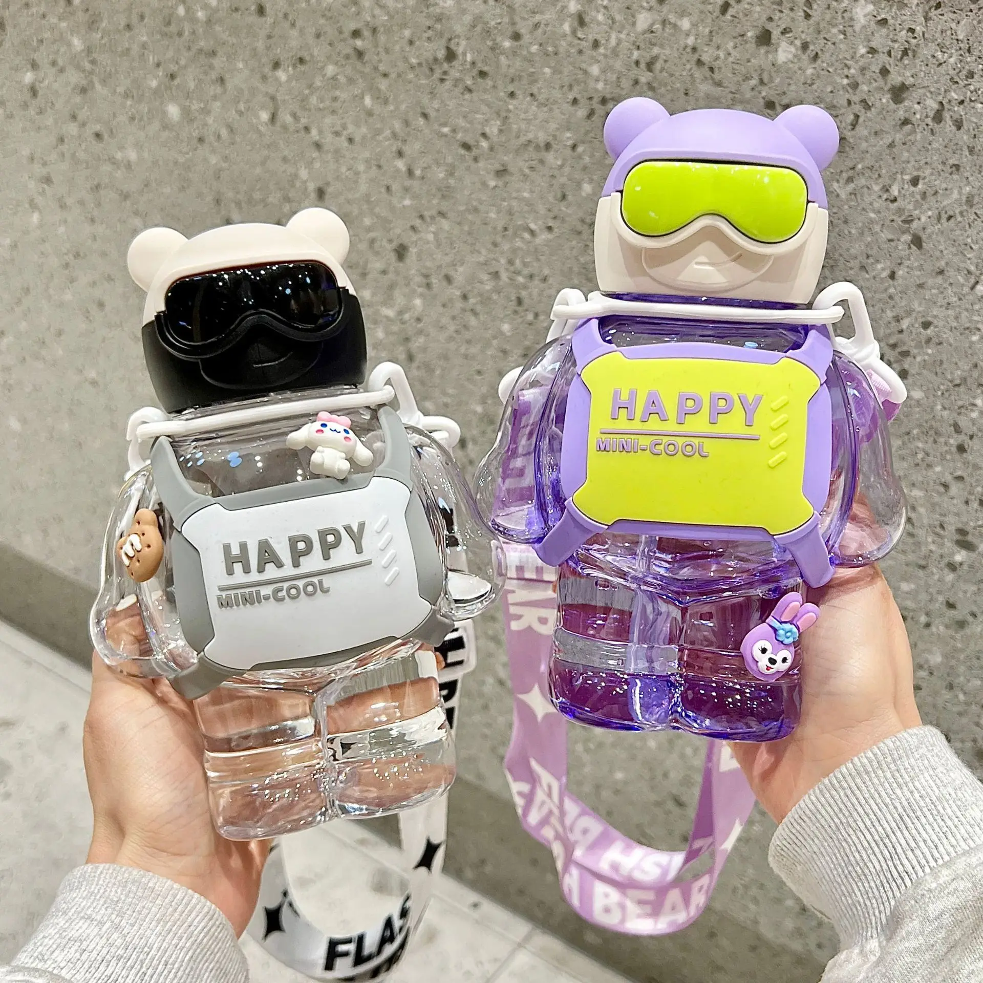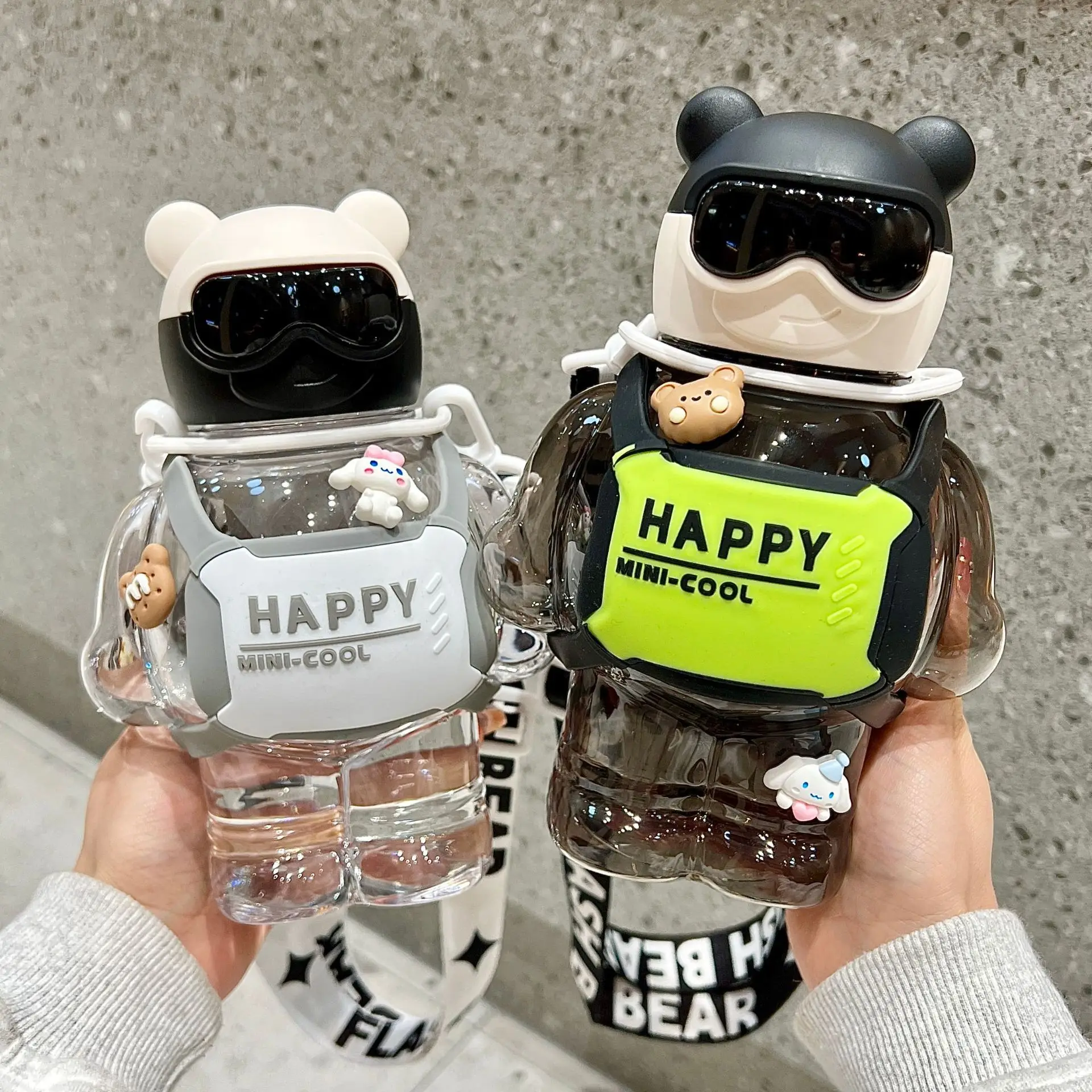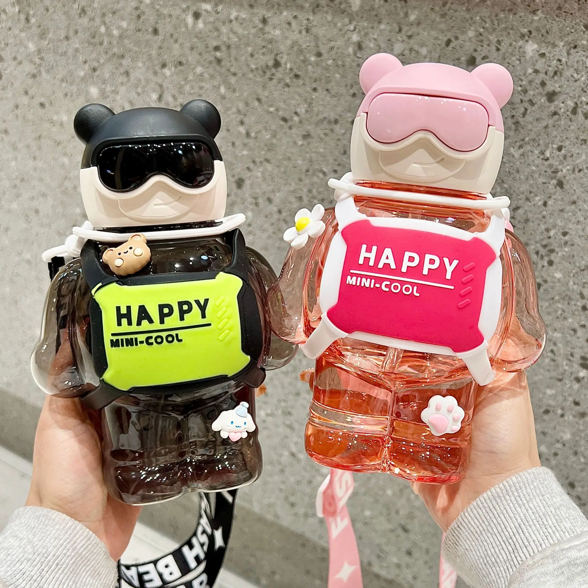800ml kids cartoon plastic cute children outdoors happy bear with glasses school water bottles