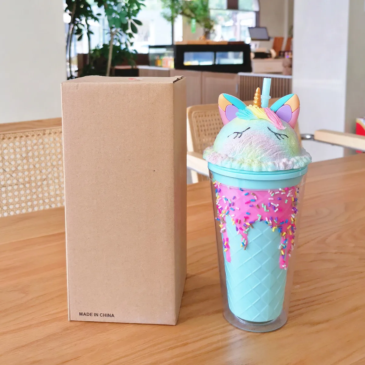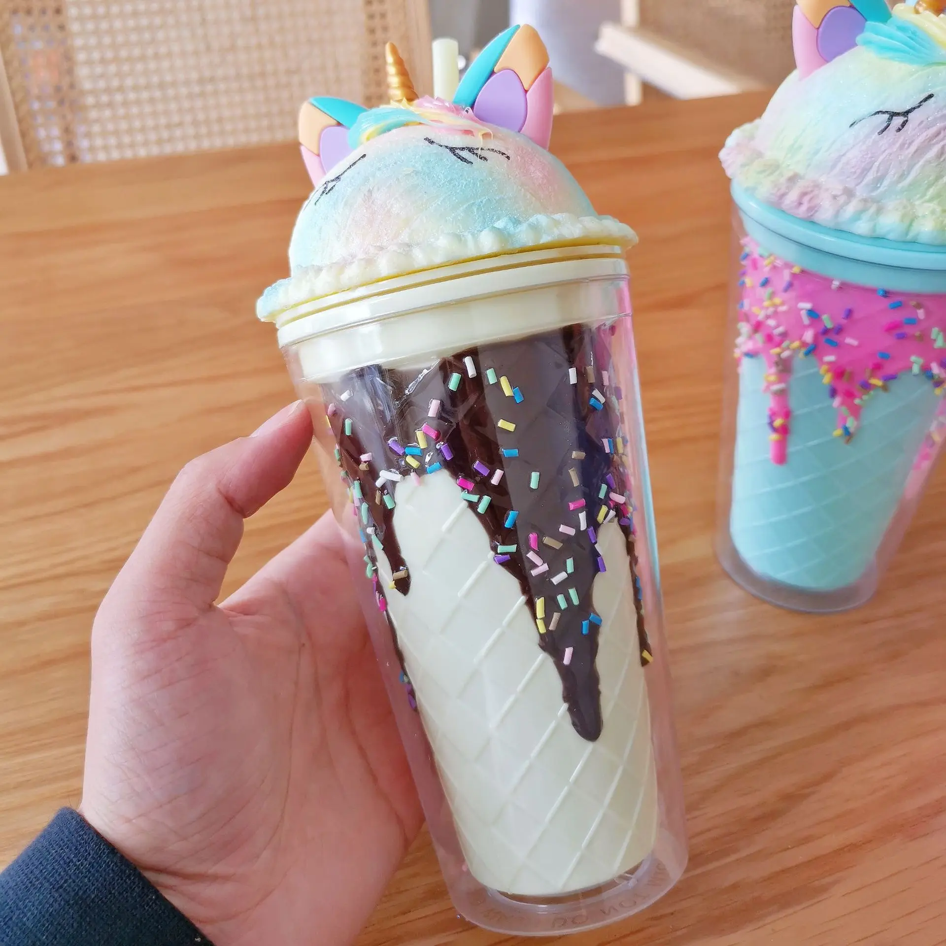 Colored ice cream double wall plastic tumbler mug milk tea coffee juice cups with lids and straws