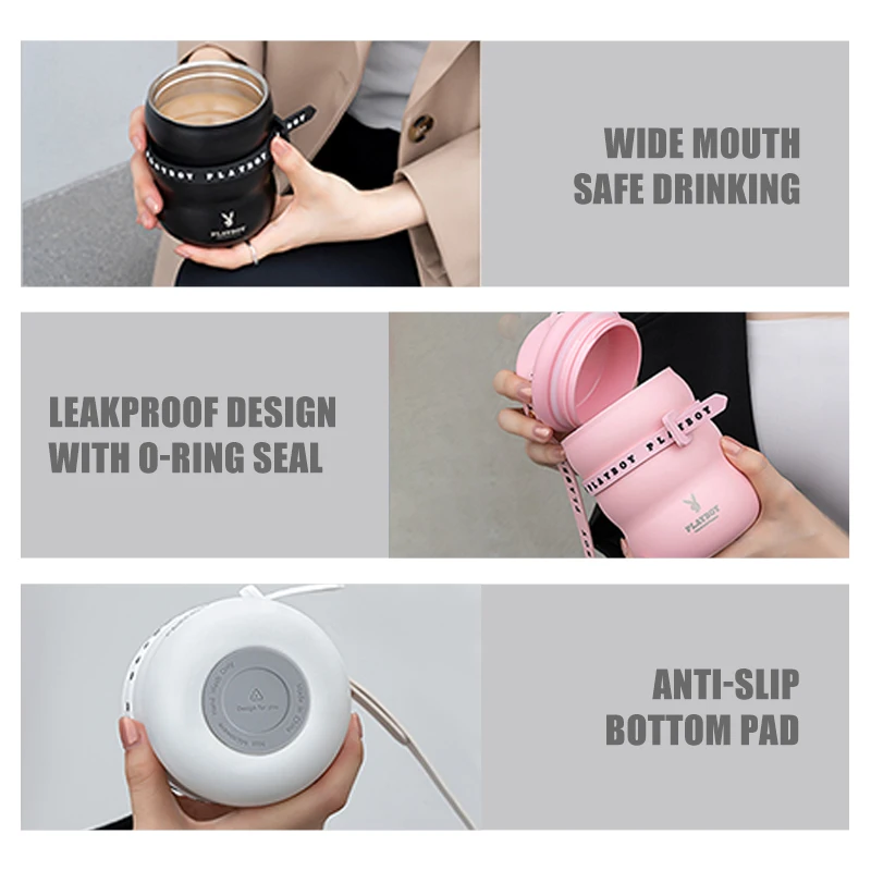 Cute 316 Stainless Steel Water Bottle BPA Free Cup Eco-friendly Coffee Mug Anti-slip Vacuum Flask