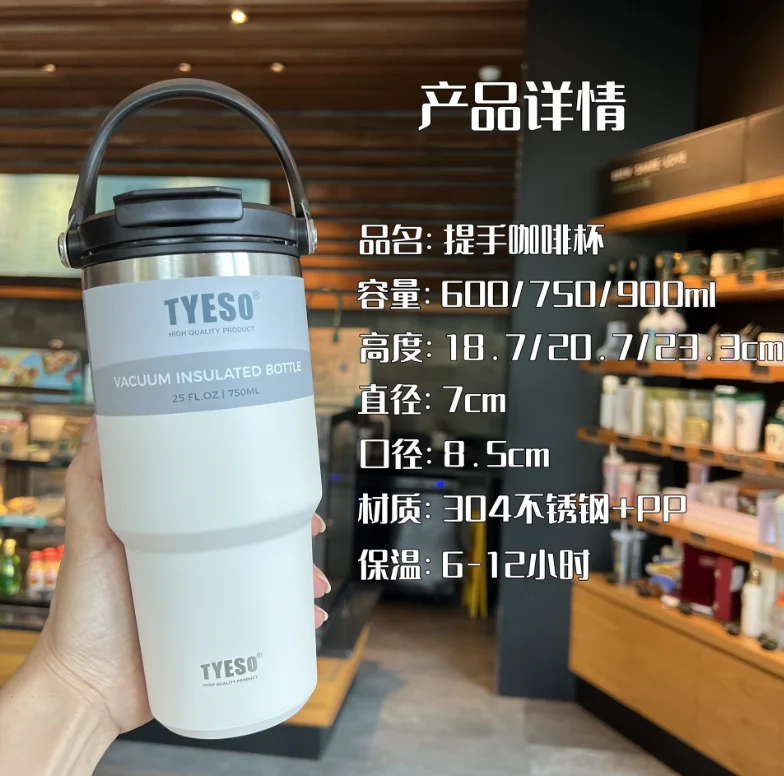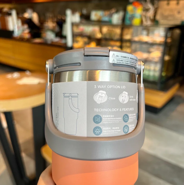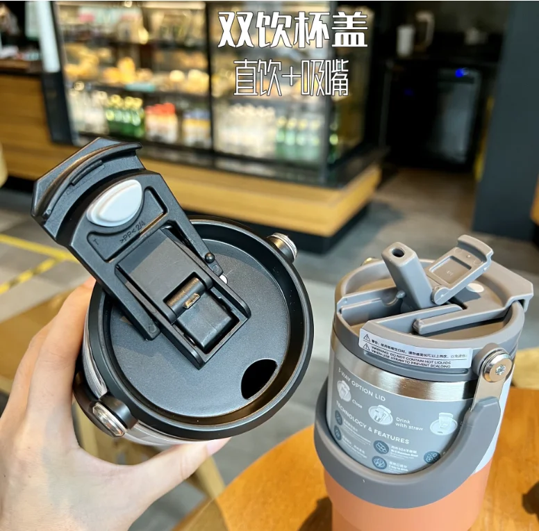 Product Descriptionitem | New Coffee Cup 3 Way Option Lid Double Insulation Portable Large Capacity Stainless Steel Drinkware Cup With Handle |
