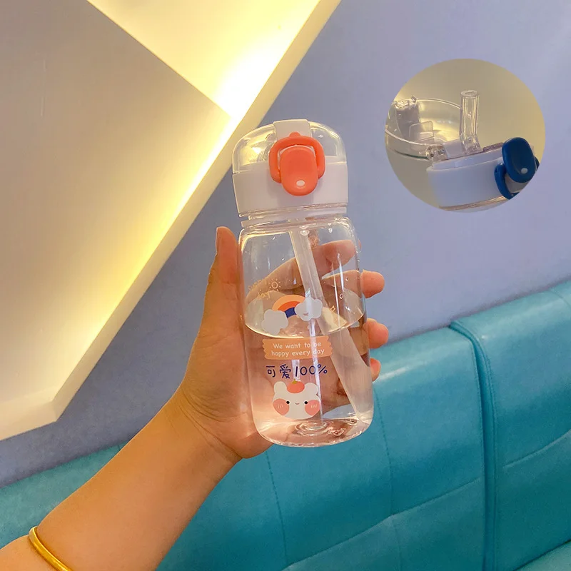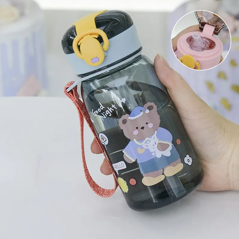 New 400ml kids plastic water bottle cute bear plastic water bottle with straw drinking water plastic bottle
